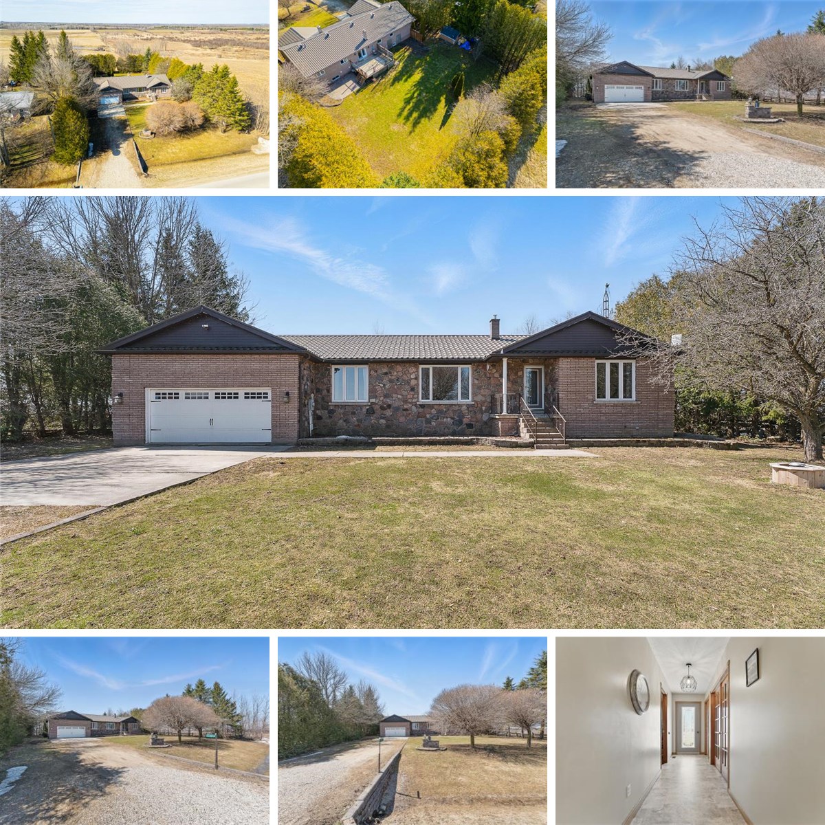 Affordable Country Living on a Private 0.52-Acre Lot – Move-In Ready Bungalow! Escape the city and enjoy the peace & quiet of this well-maintained 3+1 bedroom, 2.5 bath, brick and stone bungalow, with a metal roof, nestled on a private, landscaped half-acre lot surrounded by mature trees and open farmland. Witness nature and scenic views in every season. This spacious bungalow is 1,771 sf on the main floor plus another 1,756 sf in the mostly finished basement and features hardwood floors and large, sun-filled principal rooms. The main level includes a bright living room with picture window, formal dining room, and an open-concept kitchen with breakfast area with a walkout to a large deck overlooking a peaceful, treed backyard. Three generous bedrooms and main floor laundry offer practical family living. The finished basement adds excellent versatility with a 4th bedroom, 3-piece bath, a large recreation room with gas fireplace, kitchenette area, a workshop space and a gym/work-out area. A separate side entrance provides ideal potential for an in-law suite or rental setup. A great feature is the 915 sq ft tandem garage, which comfortably fits 3 vehicles with extra space for tools or toys. Additional standout highlights include natural gas heating (rare and cost-effective in rural areas), a metal roof for long-term durability, ample parking for trailers or recreational vehicles. Location is superb with nearby amenities like Foodland, Tim Hortons, and schools just minutes away. Just 5 mins to Dundalk, 20 mins to Shelburne or 30 mins to Mount Forest, and approximately 75 minutes to the GTA, this home offers the perfect balance of tranquility and convenience. Whether you’re looking for more space, a peaceful setting, or a family-friendly home with potential income options, this property checks all the boxes. Don’t miss this opportunity for affordable, spacious country living close to town! This move-in ready home is full of character & charm.